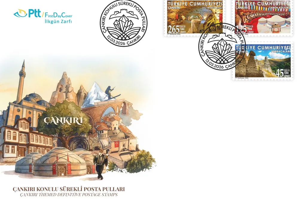 PTT AŞ, “Çankırı” konulu sürekli posta pulları ve ilkgün zarfını 12 Mart 2026 tarihinde tedavüle çıkardı.